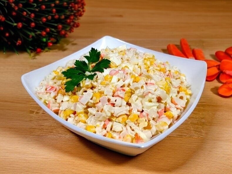 Этот салат – настоящая ностальгия по 90-м, но он до сих пор остаётся популярным благодаря нежному вкусу и лёгкости приготовления.