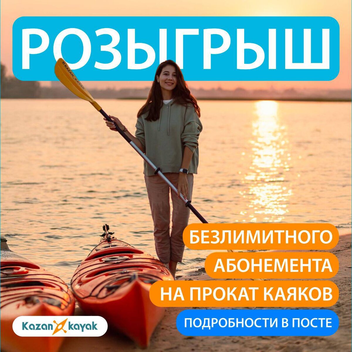 Покаячим? 🚣♀️ Друзья, хочу поделиться одной находкой — это @KazanKayak! Именно здесь можно почувствовать, что такое настоящее лето в городе! И теперь у вас есть шанс это испытать — мы разыгрываем абонемент на безлимитный прокат каяка на всё лето! 🎁 @KazanKayak — это каяки прямо в городе! Всего 15 минут от центра Казани, и вы уже на воде. Добраться легко 🚗🚌 и на машине, и на транспорте. Здесь можно не просто покататься, а доплыть до волжских островов, отдохнуть на пляже ☀️, покататься на качелях и встретить закат так, что захочется сфотографировать каждый момент 📸 Даже если вы ни разу не были на каяке — всё покажут и расскажут 🙌. В прокат уже включено всё: каяк, весло, жилет, юбка и инструктаж. Парковка рядом. Всё для кайфа! 😍 Как принять участие в розыгрыше: ✅ Поставьте реакцию под этим постом ✅ Подпишитесь на @KazanKayak ✅ Нажмите кнопку «Участвую» Результат подведем 27 мая с помощью бота — всё честно и автоматически! Больше информации в нашей группе, переходите