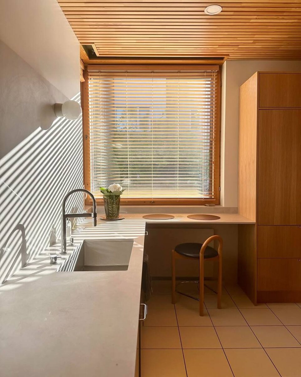 Сегодня мы погрузимся в кухню архитектора Илоны в доме-атриуме 1970-х годов и окунемся в ее спокойную и умиротворяющую атмосферу. На кухне деревянные поверхности сочетаются с каменными поверхностями Dekton в цвете Argentium. Больше фото вы найдёте на нашем официальном сайте.