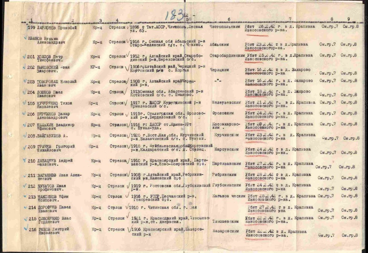 Российские поисковики ищут пропавших без вести воинов Великой Отечественной войны. В 2024 году в Калужской области подняты останки 1250 солдат, среди которых 45 уроженцев Красноярского края. В газете «Наш Красноярский край» от 16 мая 2025 года опубликован список погибших, среди них наш земляк Лабацеев (Лобацеев) Андрей Павлович, 1910 г.р., погибший 5 августа 1942 года в Смоленской области, д. Крапивка.