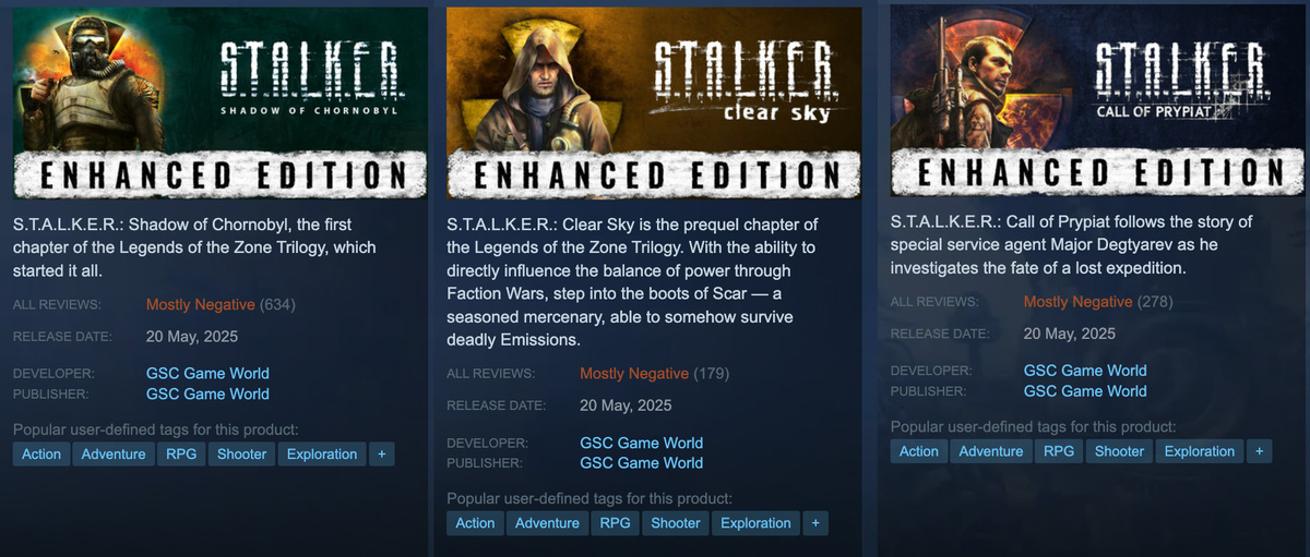 Ремастеры Stalker уже столкнулись с серьезными проблемами, обрушившими рейтинг в Steam