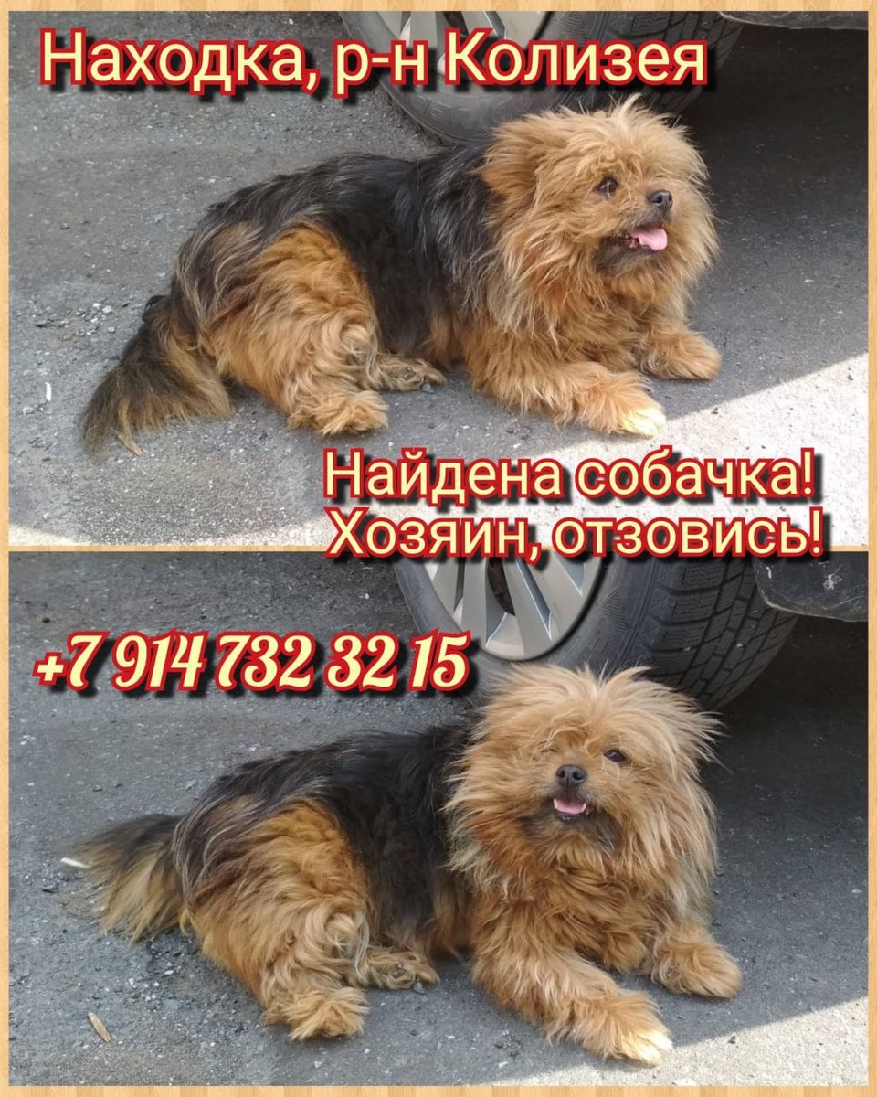 НАХОДКА Во дворе дома на Гагарина, 12 (возле Колизея) появилась маленькая собачка, девочка в возрасте, предположительно йоркширский терьер. Ласковая, контактная, идёт на ручки. Ошейник красного цвета, без адреса, с бубенчиком. Собачка будет до вечера на передержке у жителя этого дома. Дольше оставить нет возможности, дома есть своя собака, которая не принимает потеряшку. Контактный тел: +7 914 732-32-15
