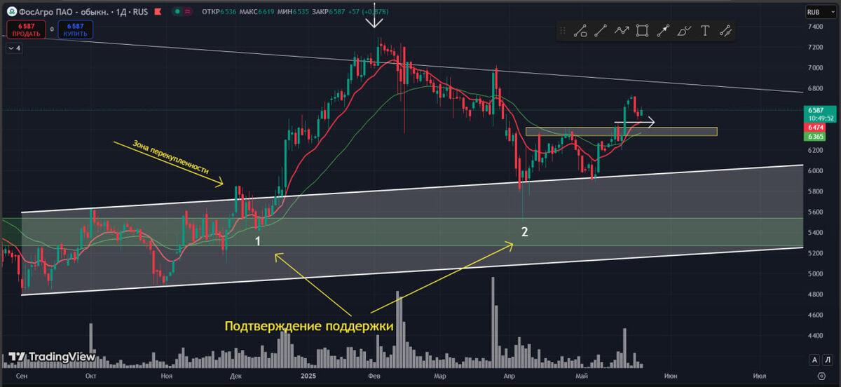 Акции Фосагро. Разбор на дневном графике 21.05.2025