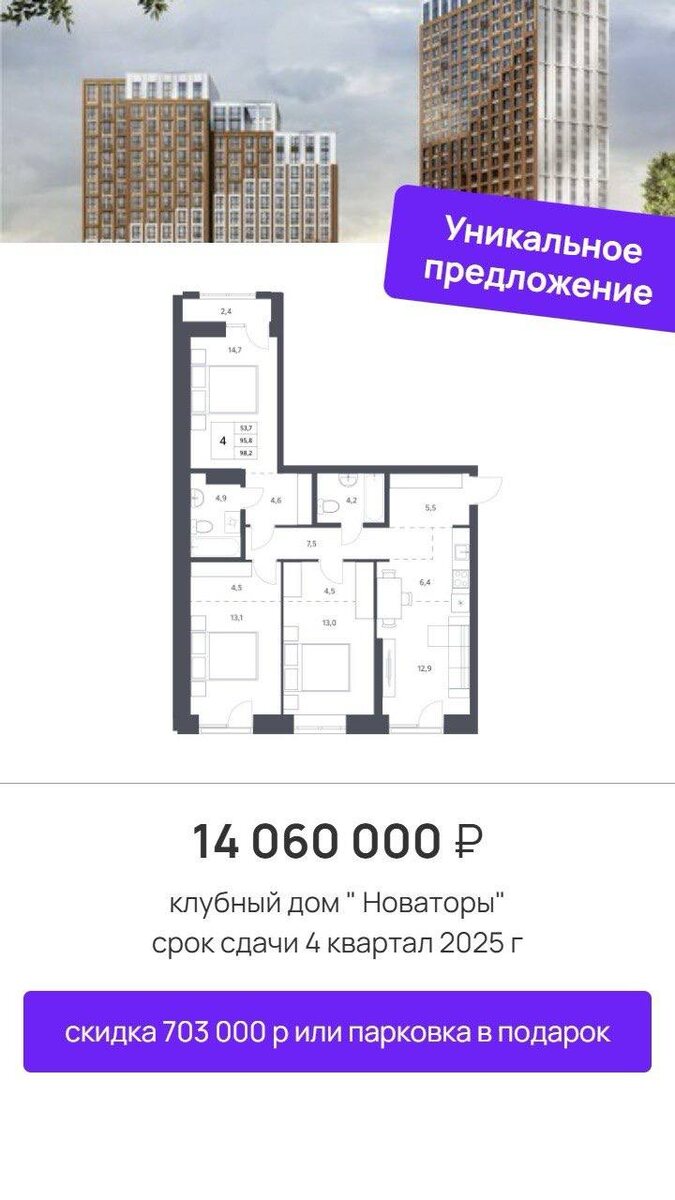 π₯ΠΡ ΠΌΠΈΠ½ΠΈΠΌΠ°Π»ΡΠ½ΠΎΠ³ΠΎ ΠΏΠ΅ΡΠ²ΠΎΠ³ΠΎ Π²Π·Π½ΠΎΡΠ° Π΄ΠΎ ΠΏΠ°ΡΠΊΠΎΠ²ΠΊΠΈ Π² ΠΏΠΎΠ΄Π°ΡΠΎΠΊ: Π»ΡΡΡΠΈΠ΅ ΠΏΡΠ΅Π΄Π»ΠΎΠΆΠ΅Π½ΠΈΡ Π² ΠΏΡΠΎΠ΅ΠΊΡΠ΅ Π±ΠΈΠ·Π½Π΅Ρ-ΠΊΠ»Π°ΡΡΠ° ΠΠ»ΡΠ±Π½ΡΠΉ ΠΊΠΎΠΌΠΏΠ»Π΅ΠΊΡ Π² ΠΊΠΎΠ½ΡΠ΅ ΠΡΠ°ΡΠ½ΠΎΠ³ΠΎ ΠΏΡΠΎΡΠΏΠ΅ΠΊΡΠ°, ΡΡΠΎΠΊ ΡΠ΄Π°ΡΠΈ 4 ΠΊΠ²Π°ΡΡΠ°Π» 2025 Π ΠΏΡΠΎΠ΅ΠΊΡΠ΅ Π±ΡΠ΄Π΅Ρ: β’ Π‘ΠΎΡΠ΅Π΄ΡΠΊΠΈΠΉ ΡΠ΅Π½ΡΡ 170 ΠΌ β’ Π‘ΠΏΠΎΡΡΠΈΠ²Π½ΡΠΉ Π·Π°Π» β’ ΠΡΠ΅Π·Π΅Π½ΡΠ°Π±Π΅Π»ΡΠ½ΠΎΠ΅ Π»ΠΎΠ±Π±ΠΈ βοΈΠ ΠΌΠ°Π΅ ΠΌΡ ΠΌΠΎΠΆΠ΅ΠΌ ΡΠΎΠ³Π»Π°ΡΠΎΠ²Π°ΡΡ ΡΠΊΠΈΠ΄ΠΊΡ Π½Π° ΠΊΠ²Π°ΡΡΠΈΡΡ, ΠΏΠ°ΡΠΊΠΎΠ²ΠΊΡ Π² ΠΏΠΎΠ΄Π°ΡΠΎΠΊ ΠΈ ΠΌΠΈΠ½ΠΈΠΌΠ°Π»ΡΠ½ΡΠΉ ΠΏΠ΅ΡΠ²ΡΠΉ Π²Π·Π½ΠΎΡ. ΠΡΠ΅ ΡΠΎΠ³Π»Π°ΡΠΎΠ²Π°Π½ΠΈΡ ΠΏΡΠΎΡ