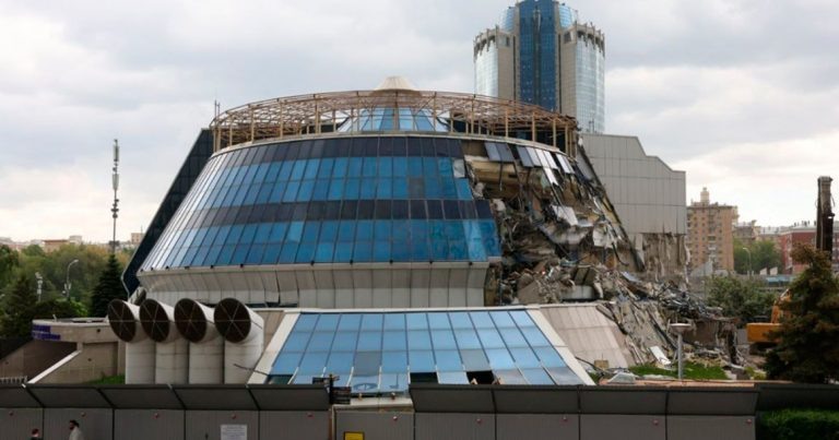 На Пресненской набережной начали сносить вестибюль моста «Багратион»