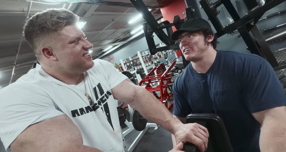 Атлет (возможно, Ник или Дерек) – только что с Олимпии, но уже рвёт спину, как будто завтра снова выход на сцену 🏆