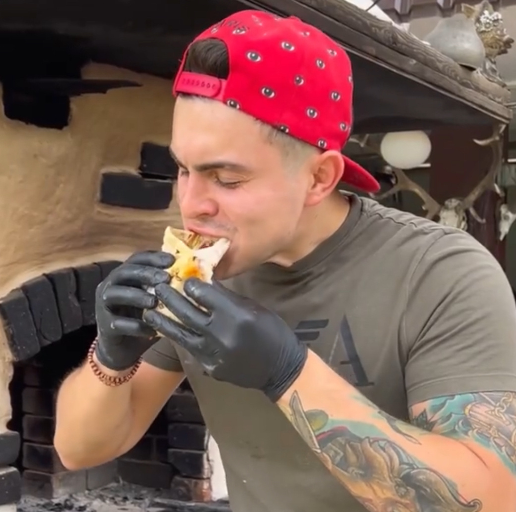 Продолжаю радовать вас рецептами на улице! Сегодня готовим сочнейшее блюдо - люля в домашних лепешках, на этот аромат сбегутся все соседи!😍 Дома приготовить конечно можно, но аромат костра очень важен… Начинаем! Для фарша возьмем 800гр говядины и порубим ее Добавим 1 яйцо И специи по вкусу! У меня: Соль 1 ч.л., Чёрный перец 0,5 ч.л., Паприка 1 ст.л., Зира 0,5 ч.л., Кориандр 0,5 ч.л Туда же чеснок 2 зубчика и мука 1 ст.л. Тщательно замешиваем И отбиваем получившийся фарш Далее, нам понадобятся свежие овощи! Для соуса возьмем томаты 3 шт и болгарские перцы 3 шт. Запекаем на костре Очищаем от кожуры Мелко нарезаем 1 луковицу и жарим на 70гр сливочного масла Добавляем специи. У меня: соль, перец, кориандр, зира по 0,5 ч.л. До золотистой корочки Нарезаем замеченные перцы и помидоры, добавляем к луку Берём свежую кинзу 70гр и 3 зубчика чеснока, все мелко нарезаем и добавляем к овощам. Оставьте немного для посыпки в конце! А пока, готовим лепешки. Нам понадобится: Мука 320 гр. Соль 1/2
