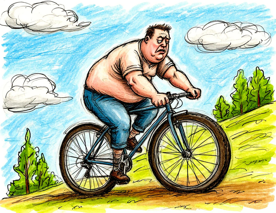 Вот ты наел себе огромное пузо. Ходить тяжело, лестницы издеваются над тобой, похудеть нереально ведь всё такое вкусное вокруг. Как же тебе сбросить свой огромный вес? Естественно, что ты смотришь на велосипед. На нём легче ездить, нежели ходить пешком или бегать. Но на самом деле, если у тебя большой живот и ты много весишь, то управление велосипедом может оказаться не таким уж полезным делом. Всё дело в посадке. Как бы ты не настраивал седло и вынос руля. Всё равно будешь сидеть немного согнувшись. Это означает, что внутренние органы будут немного сдавлены. Худому человеку или даже с небольшим пивным животом это никак не вредит. В таком состоянии нельзя много времени проводить. Это не значит, что велосипед теперь под запретом, но прогулки на нём нужно сокращать примерно до 30 минут. Похудеть за 30 минут на велосипеде никак не получится. Нужно менять образ жизни, больше ходить и делать меньше перекусов с употреблением булочек и конфеток. Вот когда объём талии упадёт, хотя бы до 120