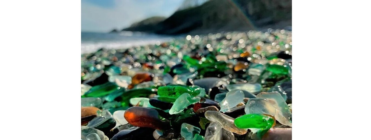 Заехали с женой в будний день, чтоб поменьше там было иностранных туристов из соседней страны. Уж больно они любят фотографироваться во всех позах. Оказалось что туристов не так и много, да и местных отдыхающих мало, вьезд пока бесплатный и нет угрожающих надписей об запрете сбора стекляшек, бери не хочу. Я вообще как-то не представляю, как они будут штрафовать за сбор мусора, а если кто-то напишет заявление за вымогательство. Ни для кого не секрет, что все стекло это остатки от мусорной свалки, которая раньше была на побережье, сюда же вывозили брак и битье с фарфорового завода, потом все это волны превратили в такую экзотическую красоту. Мы были раньше, тогда стекла было больше, но сильный тайфун Майсак в 2020 году смыл большую часть стекляшек, потом следующие штормы и тайфуны что-то вернули назад, но того количества уже нет. Возможно море вернет все назад, но скорей всего стекляшки и кусочки фарфора будут выбрасываться морем еще многие десятилетия, пока их море не перетрет в