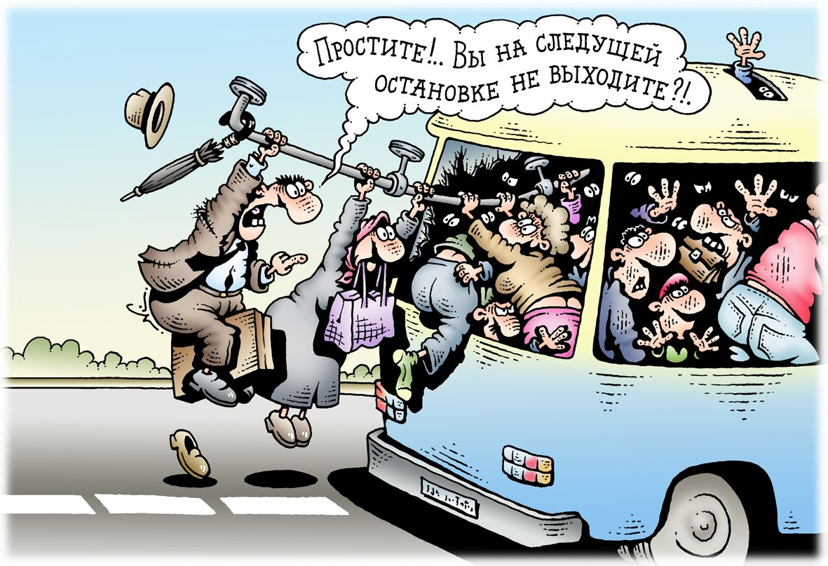 Карикатуры на эту тему всегда вызывают у меня особую симпатию. Потому что там всё знакомо. Не издалека, а буквально с личного сидения у окна, которое не открывается. Эти рисунки не придумывают реальность. Они её подмечают. Очень точно. Очень метко. И очень смешно. Недавно я собрал подборку карикатур про общественный транспорт. А ещё, по традиции, небольшой рассказ из моей жизни.