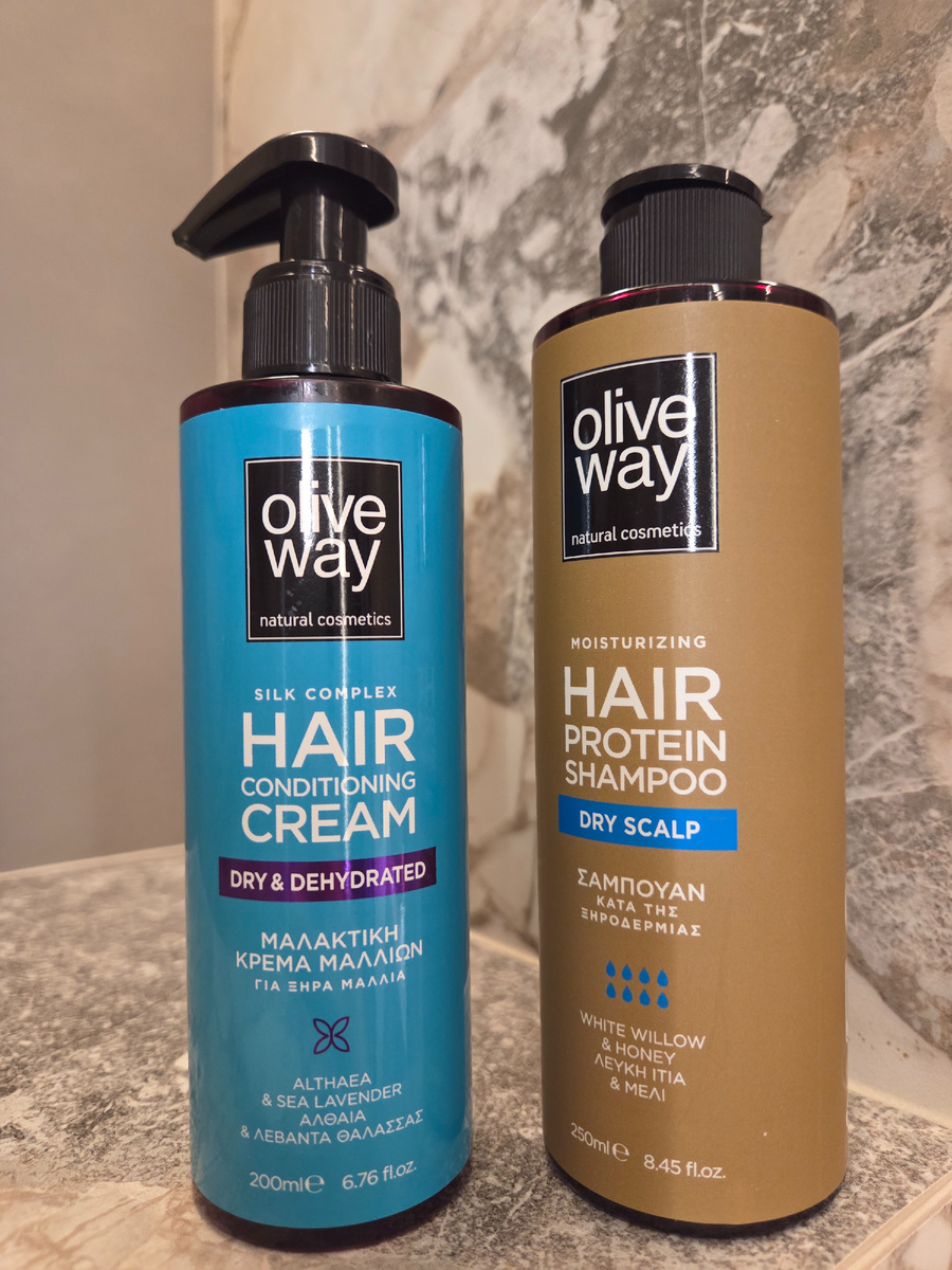 Привет! Сегодня отзыв на марку Olive way. На фото увлажняющий шампунь и кондиционер для сухих волос. У меня такие, блондированные) Продается сие в магазине ривгош, но я брала у них через озон за смешную цену. Грубо по 250р Шампунь прозрачный, с небольшим желтоватым оттенком. Жидковат немного.Пенится хорошо, волос не пересушивает. Крышка жестко открывается, стоял всегда открытым, не загустел. Аромат нейтральный, не напрягает. Могу рекомендовать, но не за те деньги, что за него сейчас хотят. Аллергии, зуд и перхоть не вызвал. Кондиционер в упаковке с дозатором. Дозатор удобный, но тк сам кондиционер очень густой и выдавливается колбаской, приходится держать флакон в руках при использовании. Само средство имеет для меня неприятную молочную отдушку, будто сухая детская смесь или молоко. Из-за отдушки повторять не буду, хотя кондиционер мне очень понравился. Это такой тип средства, который не разглаживает и создает видимость, а питает. Сухие волосы его поглощают моментально, из-за этог
