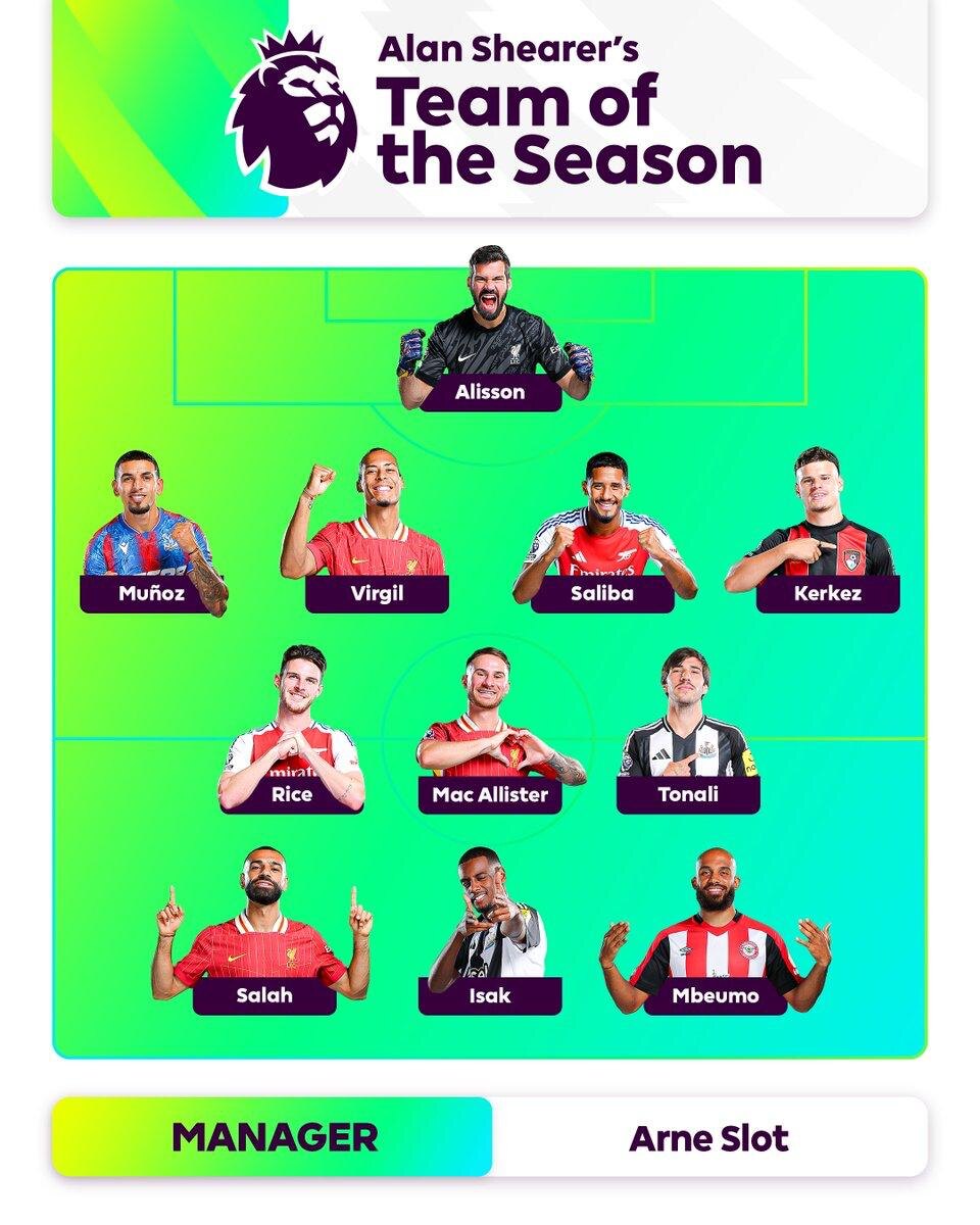 Алан Ширер составил свою символическую сборную этого сезона Премьер-Лиги ☝️
