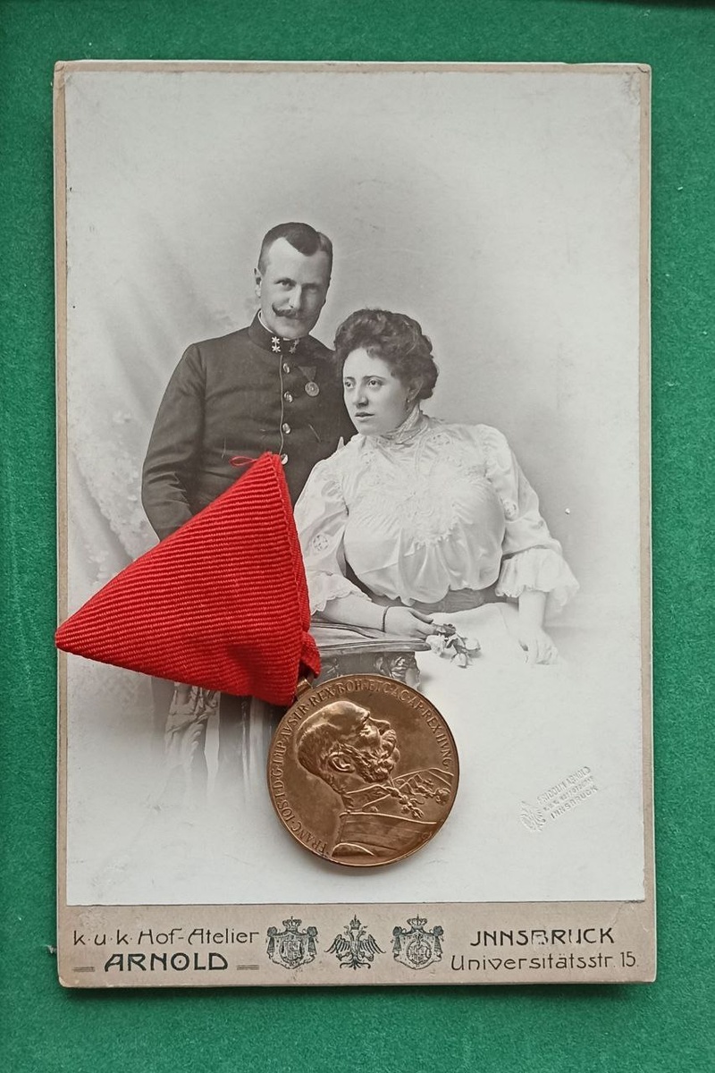 Интересная фотография из Австро-Венгии с примером ношения юбилейной медали к 50-летию правления императора Франца Иосифа
