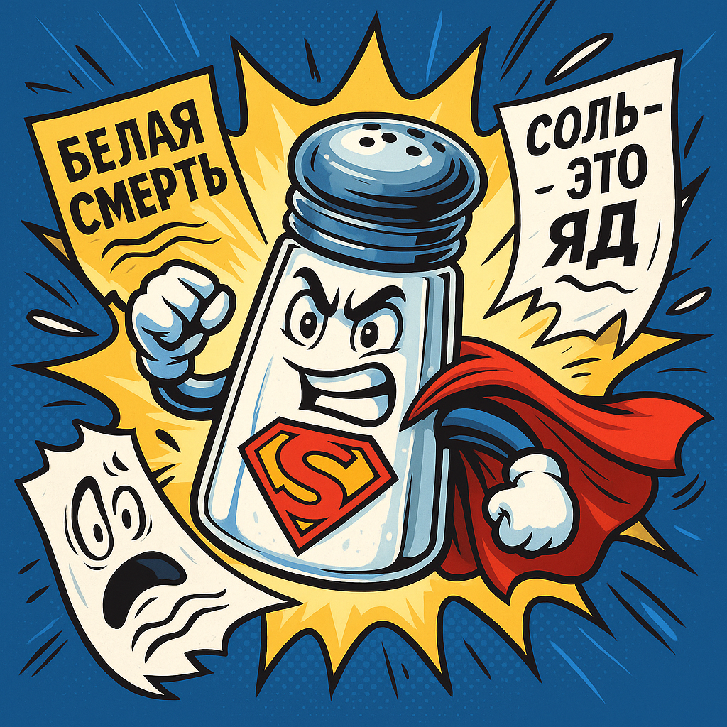 О, этот старый знакомый миф, который так любят повторять все, кто однажды посмотрел тревожный выпуск программы "Здоровье" и решил, что теперь они нутрициологи. На полном серьёзе: соль не является злом во плоти, вопреки легендам. Без неё организм просто не сможет нормально функционировать. Натрий (основа поваренной соли) участвует в передаче нервных импульсов, поддерживает водный баланс и даже помогает мышцам сокращаться. Ну, то есть — совсем не мелочь. 💥 А в чём проблема? Проблема не в соли как таковой, а в её количестве. Всемирная организация здравоохранения (ВОЗ) рекомендует не превышать 5 граммов соли в день (это примерно одна чайная ложка). А теперь угадай, сколько в среднем употребляет человек? 👉 От 9 до 12 граммов в день, по данным ВОЗ. То есть в два раза больше нормы! Но виновата в этом не солонка, а обработанные продукты: колбаски, снеки, полуфабрикаты — всё, что вкусно, но страшно. 🧠 И что, теперь можно солить картошку без чувства вины? Можно! Если ты не высыпаешь полпачки