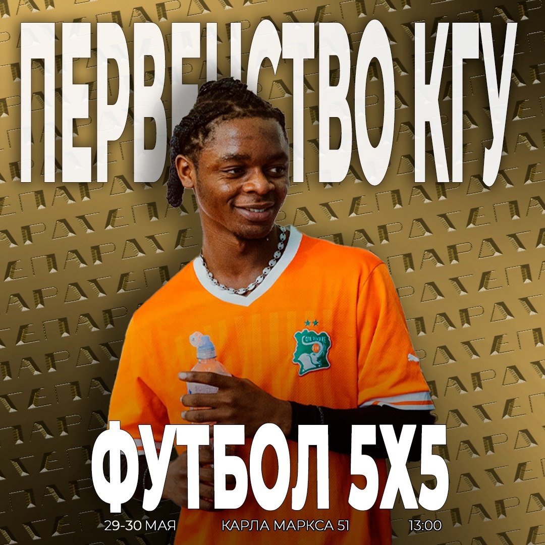 Первенство КГУ по футболу 5х5 среди мужских команд в зачет Спартакиады факультетов 🏆 29-30 мая в 13:00 Спортивный зал на 7 этаже (ул. Радищева, д.29) Состав команды: 🔵5 основных игроков ⚫️Не более 2 запасных игроков в команде 🔵Не более 2 членов сборной команды по футболу в составе команды 🔜Предварительная заявка подается капитаном команды до 27 мая включительно по ссылке В составе одной команды могут быть представители разных факультетов, при этом каждый участник приносит своему факультету 0,5 баллов - за участие, 1 балл - за 3 место, 1,5 балла - за 2 место, 2 балла - за 1 место в составе команды ❤️ КГУ | Подписаться