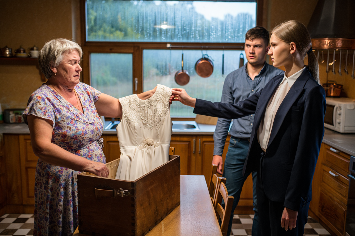 Я подняла крышку и осторожно раскрыла полотно — ткань чуть пожелтела, но в каждом сгибе, в каждом стежке была вложена любовь. Для меня оно было чем-то большим, чем просто наряд — символ семьи.