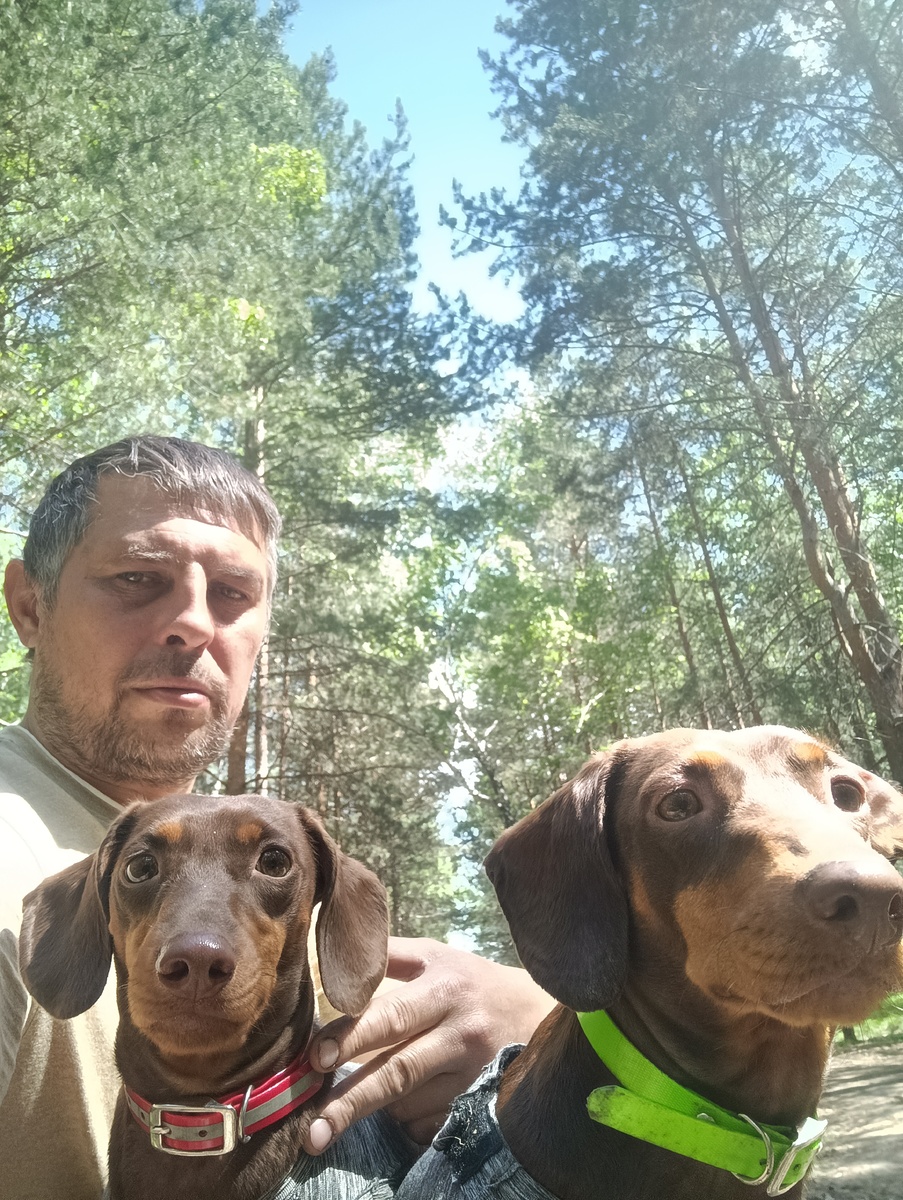 Сегодня произошел случай у меня конечно именно с Мишель он не первый. От такс ни когда нельзя отвлекаться. Стоит только заболеть и тебе с работы сразу идут миллион звонков. Гуляли с собаками с утра ( если можно так сказать в 10:30) в роще. Уже повёл их к выходу из рощи как зазвонил телефон. Пока разговаривал собаки шли рядом. Подходя к дороге откланялся от разговора оборачиваются а со мной одна Николь. Давай кричать Мишель ноль реакции. Что делать?. Стоять здесь и ждать (зная Мишель можно и 2 часа простоять). Идти домой? Не вариант две большие дороги собаке одной переходить. Мишель не потеряется нет. Дорогу домой найдёт. Но вот эти дороги с интенсивным движением. И тут я смотрю на Николь и автоматом выдаю,, где твоя мама, где Мишель?,,. И что вы думаете. Она развернулась и повела. А точнее даже полетела только и беги за ней в при прыжку. Особенно хорошо бежится больному и с температурой. Ни километр конечно, но добрых метров 800 пробежали. Николь остановилась. И тут я за переживал. 3