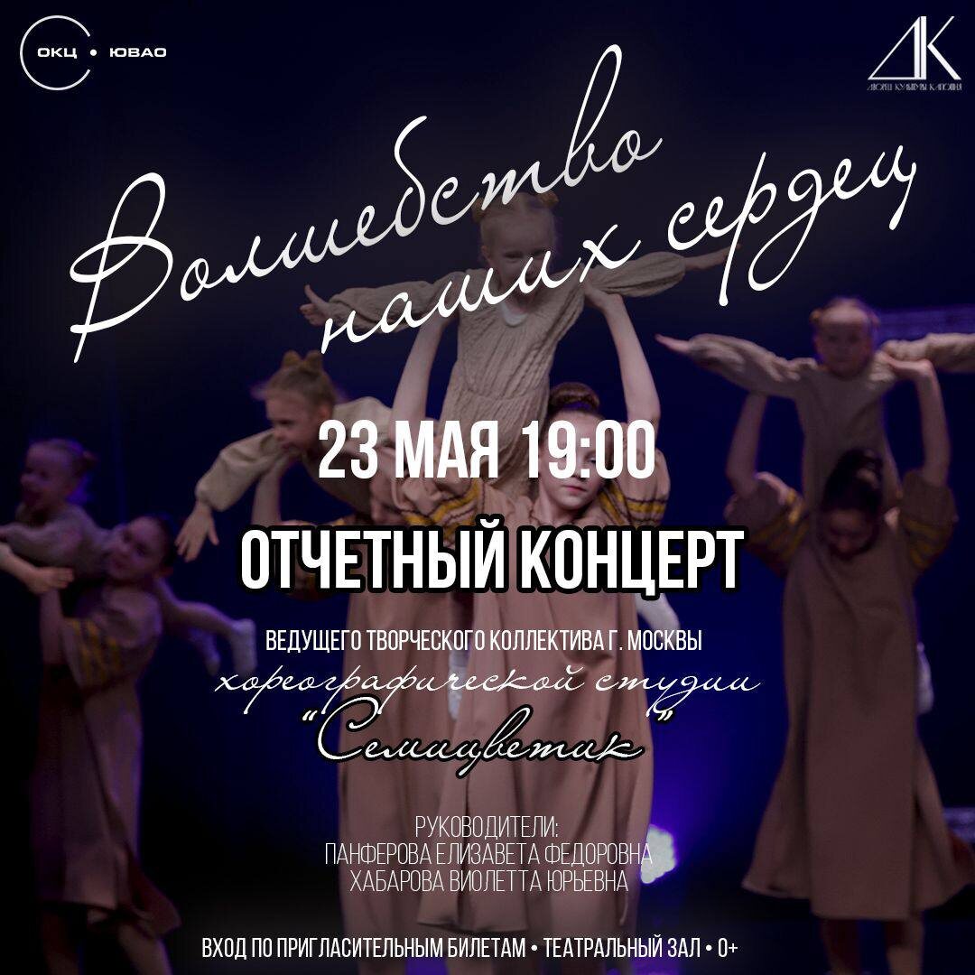 Друзья! ⭐️ 23 мая в 19:00 в театральном зале состоится концерт Ведущего творческого коллектива г. Москвы хореографической студии "Семицветик". ✨ Отчётный концерт станет настоящим праздником для всех участников студии, их родителей и друзей. Зрителей ожидает увлекательное путешествие по миру танца, представленное в разнообразных стилях – от классики и народных мотивов до модерна. ❤️ Не пропустите возможность насладиться искусством и талантом юных танцоров! Вход на концерт осуществляется по пригласительным билетам, которые необходимо забронировать по ссылке: https://bilet.mos.ru/event/338911257/ #дккапотня #культура #московскиекультурныецентры #ялюблюмоскву #вместескультурой