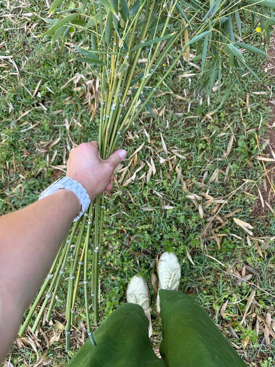 Упс, не удалось. Хотелось нарезать бамбука, но мой секатор упёрся — не по зубам ему такая задача. Тут нужна пила, а её с собой не оказалось🤪😂😂 Что делать? Я решила настричь тонких боковых веток — и вот такой вышел выход. Не всегда всё даётся с первого раза. Иногда просто не хватает подходящего инструмента. Но это не повод останавливаться — всегда можно найти обходной путь.