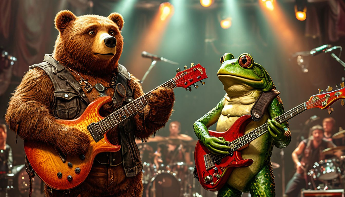 Мораль: Даже если ты лягушка без слуха и медведь без ритма — ваш рок-н-ролл сломает все устои. Или пару барабанов. Или медвежье спокойствие.