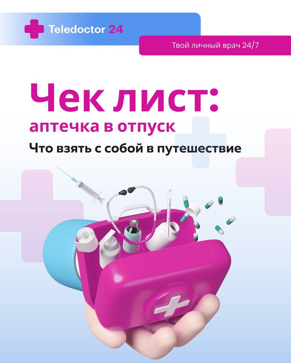 Чек-лист: аптечка в отпуск ✈️ Планируете отдых? Не забудьте собрать аптечку — она поможет справиться с неожиданностями в пути или на пляже. Что взять с собой: 1. Обезболивающее и жаропонижающее 💊 Парацетамол или ибупрофен 💊 Спазмолитик (например, но-шпа) 2. От проблем с желудком 🤢 Смекта или активированный уголь 🦠 Пробиотики 🌀 Средства от тошноты 3. Антисептики и перевязка 🧴 Хлоргексидин или перекись 🩹 Пластыри 🩺 Бинт, стерильные салфетки 4. Против аллергии 🌼 Антигистаминные (цетрин, супрастин) 🧴 Гель от зуда и укусов 5. От простуды и насморка 🌬️ Спрей/пастилки для горла 👃 Капли в нос 6. Ваши регулярные лекарства 📋 По назначению врача (если летите — возьмите рецепты) 7. Защита от солнца и насекомых ☀️ Крем с SPF 🦟 Репеллент 🔥 Пантенол от ожогов А если что — Теледоктор24 всегда рядом! 📱 Онлайн-консультации врачей 24/7 — в любой точке мира. Будьте спокойны — здоровье с вами!