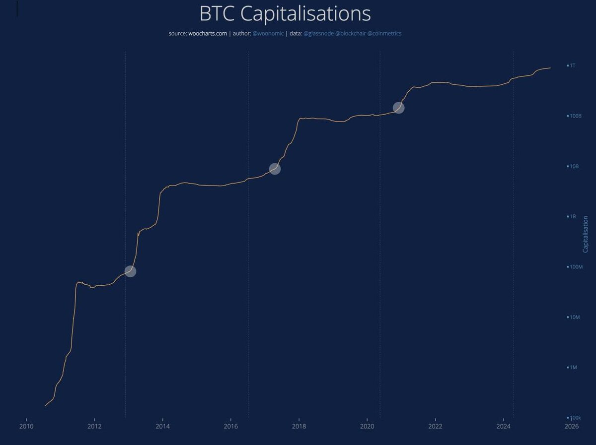 Биткойн на пути к $1 триллиону вложенного капитала Этот график показывает не цену, а капитал, вложенный в BTC — с поправкой на утерянные монеты и холдинг. И мы почти у триллиона. Но главное — не это. Главное: мы ещё не видели вертикального взлёта. Того самого фазы FOMO, когда толпа ломится в поезд на ходу. Так было в каждом цикле — и в 2013, и в 2017, и в 2021. Сейчас — спокойная фаза накопления. Пока. Но история подсказывает: финал — это всегда экспонента. К чему всё идёт? Если инвесторская эйфория ещё впереди, значит, пик цикла тоже ещё впереди. И всё, что мы наблюдаем сейчас — это затишье перед выбросом капитала. Хотите, разберу, как этот показатель связан с рыночным дном, пиком и стратегией выхода? Напишите в комментариях или поставьте 🔥 — сделаю отдельный разбор, чтобы вы могли ориентироваться по фазам цикла, а не по эмоциям. #биткоин #капитализация #парабола