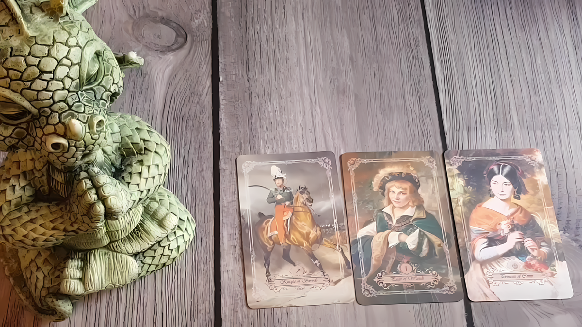 Теперь давайте посмотрим, что происходит между вами, какие у вас отношения. Карты показывают Шута, Тройку Мечей и Императора. Девочки, мои дорогие, ваши отношения зависят от его настроения, от его импульсивных решений, и это создает ощущение нестабильности. Он есть в вашей жизни, но в то же время его как будто нет. Шут рисует его как большого ребенка, который примеряет на себя разные роли — то гусар, то король, то романтик. Он играет, носит маски, и порой кажется, что он не до конца серьезен. Если у вас есть дети, то он словно еще один ребенок, который бывает несносен, капризен, но в то же время очарователен. Его поведение порой раздражает, потому что он не всегда берет на себя ответственность, предпочитая оставаться в своей легкости.