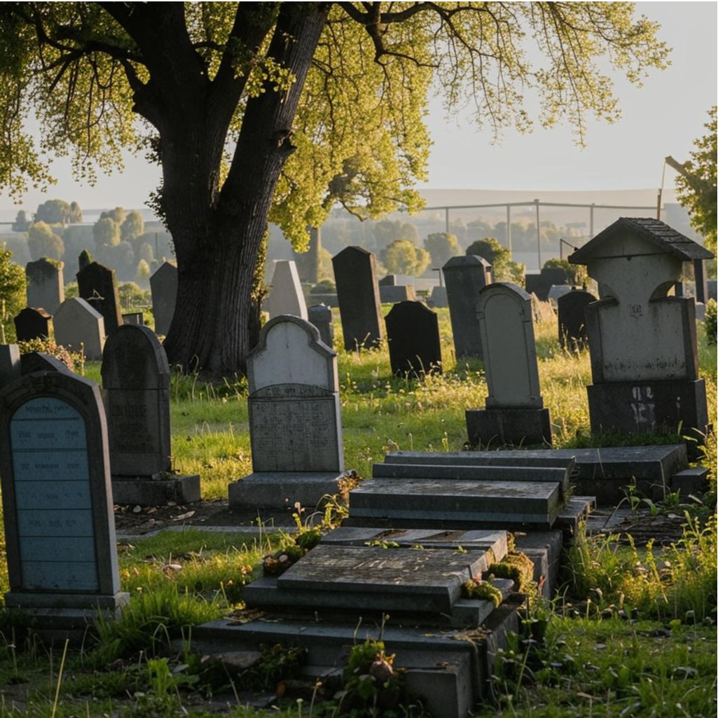 Чтобы вы понимали, кладбище, очень большое,сектора,деревья там нельзя садить,есть пара деревьев и они старые.ничего не поняв ,решили искать.