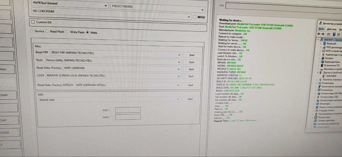 Infinix hot 20i AMT, Cheetah, UnlockTool не справились EFT через вкладку мета мод победил