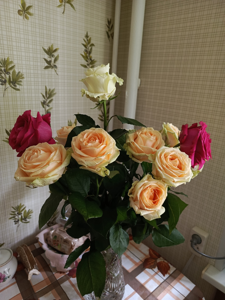 Вечером с работы вернулся муж с букетом роз... Тихое семейное застолье- отмечание моего юбилея.