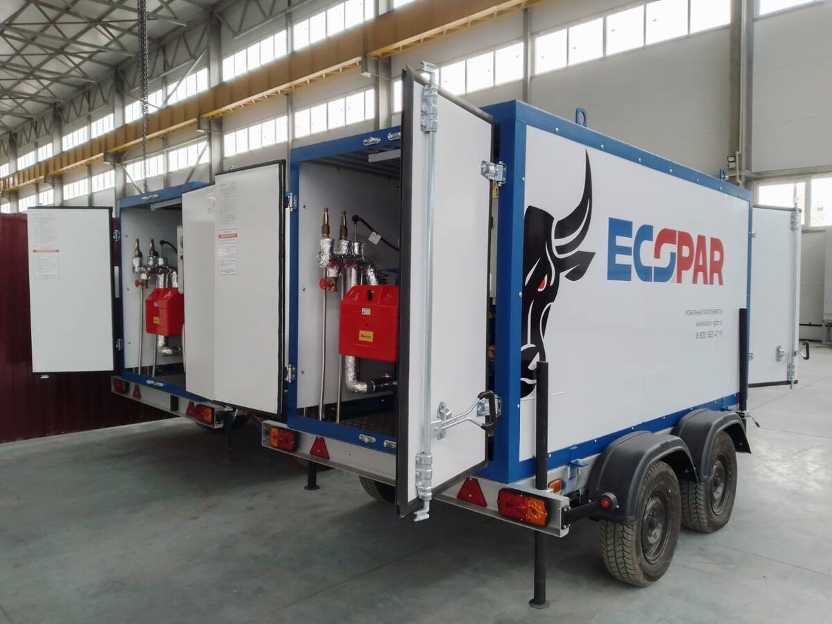 С территории Краснодарского котельного завода отгружены два мобильных парогенератора модели ECO-PAR. Каждый агрегат имеет рабочее давление 13 бар и способен производить 500 килограммов пара в час, обеспечивая высокую производительность и надежность в эксплуатации.