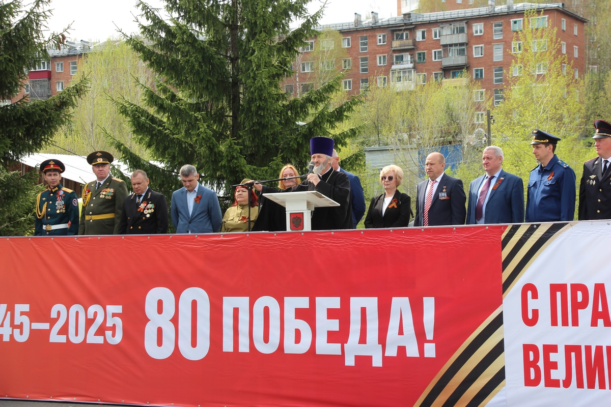 Благочинный Таштагольского округа, настоятель собора великомученика Георгия Победоносца протоиерей Иоанн Генсирук и штатный клирик собора иерей Владимир Неунывахин приняли участие в праздничном параде и митинге на центральной площади города. Отец Иоанн поздравил всех с великим праздником, пожелал участникам Великой Отечественной войны Царствия Небесного и вечной памяти, а труженикам тыла выразил благодарность за их неоценимый вклад в общую Победу. Также он выразил признательность тем, кто сегодня стоит на страже безопасности страны.