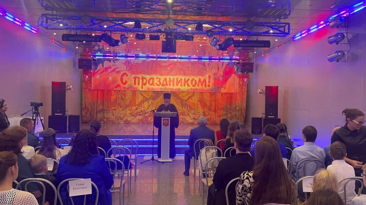В мероприятии принял участие благочинный Таштагольского округа, настоятель собора вмч. Георгия Победоносца протоиерей Иоанн Генсирук. Священник поздравил присутствующих с замечательным праздником и пожелал умножать и беречь свои семьи как дар от Господа.