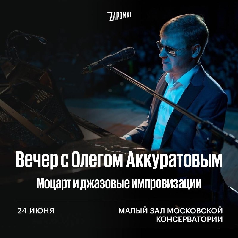 Олег Аккуратов в Малом зале Консерватории 📅 24 июня 2025 года I 19:00 Малый зал Московской государственной консерватории имени П. И. Чайковского Впервые в стенах Малого зала выступит Олег Аккуратов — слепой от рождения пианист-виртуоз с абсолютным слухом и феноменальной памятью, лауреат международных конкурсов, обладатель Премии Президента Российской Федерации в области культуры и искусства. Первая часть вечера посвящена творчеству Вольфганга Амадея Моцарта. В интерпретации Олега Аккуратова прозвучат: º Фантазия ре минор, К.397 º В. А. Моцарт / О. Аккуратов — Концерт №23 º В. А. Моцарт / О. Аккуратов — Вариации на тему из оперы «Дон Жуан» Вторая часть концерта перенесет слушателей в мир джаза. В программе — легендарные джазовые стандарты и авторские произведения артиста. 🎫 Билеты уже в продаже — рекомендуем приобрести заранее: количество мест ограничено.