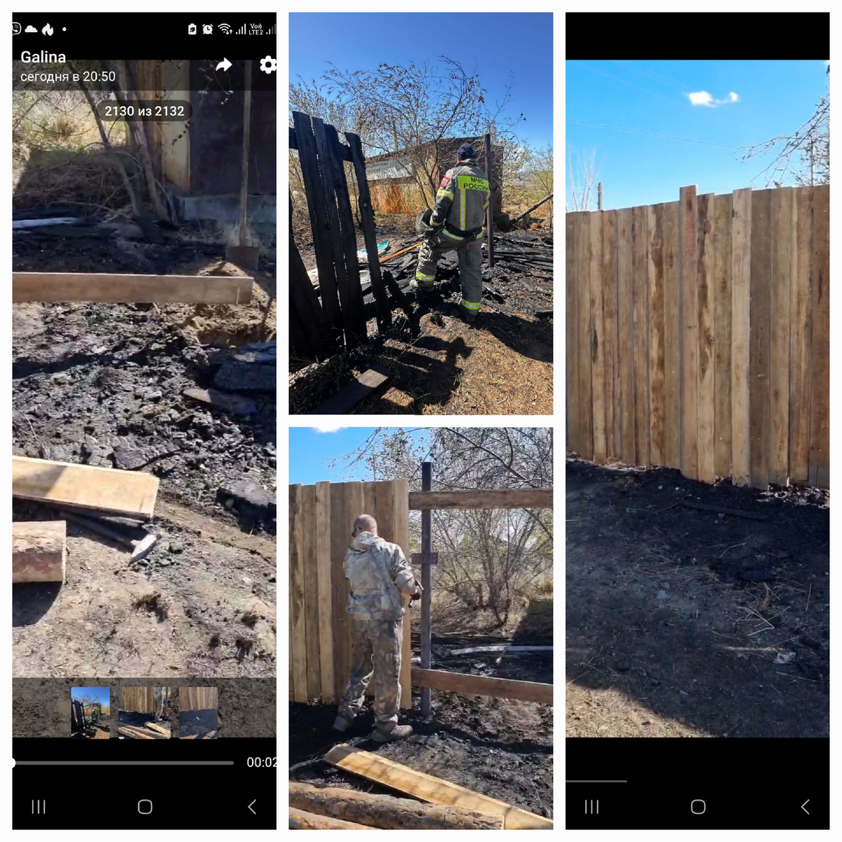 Горел забор. Не близко к нашим вольерам, но если бы пошло дальше, было бы печально. Пожарники сказали типа окурок, но точно не знаем. За работу ребятам пришлось заплатить дополнительно 4 тыс. И плюс наши материалы кроме гвоздей. С арендодателем будем разговаривать - оплата работы и материалы будут в счёт аренды. Надеемся, что договоримся.