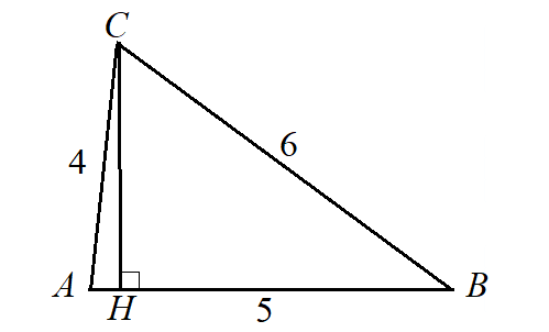Докажем интересное свойство углов треугольника со сторонами 4, 5, 6. 1. В треугольнике ABC стороны AC, AB и BC равны соответственно 4, 5 и 6. Докажите, что угол A в 2 раза больше угла B. Решение. Проведём высоту CH, её длину выразим через площадь треугольника, найденную по формуле Герона. Интересно, что обратное утверждение для нашей задачи неверно. Из того, что один угол в два раза больше другого не следует, что стороны треугольника пропорциональны числам 4, 5, 6. Это утверждение легко опровергается одним примером с треугольником с углами 30, 60 и 90 градусов.