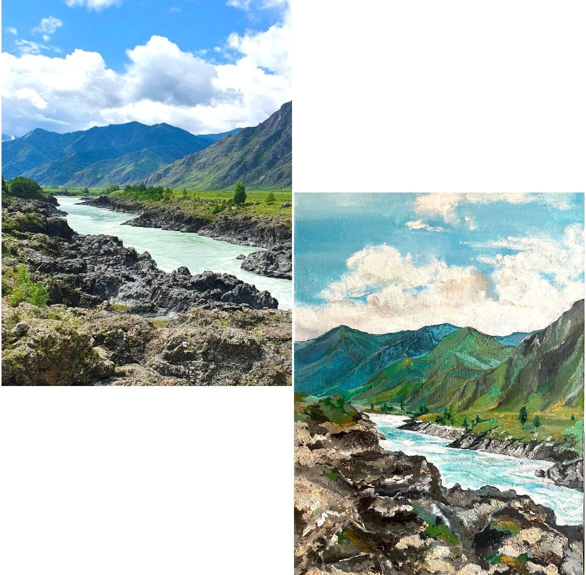 Написать пейзаж – это не просто. Важно передать глубину цвета, погоду, то самое неуловимое «сейчас», которое испытывает человек, находясь в «своем месте силы». Когда удается это сделать, рождается картина, которая переносит зрителя в другое место. Такая картина пробуждает желание сорваться с места и отправиться путешествовать, познавать мир. Именно такие эмоции я стремлюсь вызвать своими работами 🫶 Мне кажется, у меня это получилось. Это место — около Ороктойского моста в республике Алтай (Чемальский район). Подписывайтесь на мой канал в telegram: