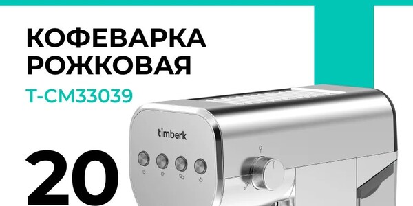 Легко сделать самый полезный кофе, если использовать качественную современную технику. Кофеварка рожковая Timberk T-CM33039 — это компактная модель с металлическим корпусом, с подсветкой кнопок, с капучинатором и платформой для подогрева чашек. Мощность техники составляет 1250 Вт.