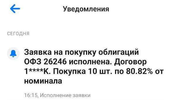 Я подавала заявку через ВТБ Инвестиции и большой плюс данного брокера в том, что сейчас он не берет комиссию за покупку ОФЗ, в том числе при покупке на размещении. То есть свои 2 копейки я все же сэкономила. Не могу сказать, что эти 2 копейки для меня принципиально важны. Хотя, если кто-то набирает огромный портфель ОФЗ, то ему эта информация может быть полезна.