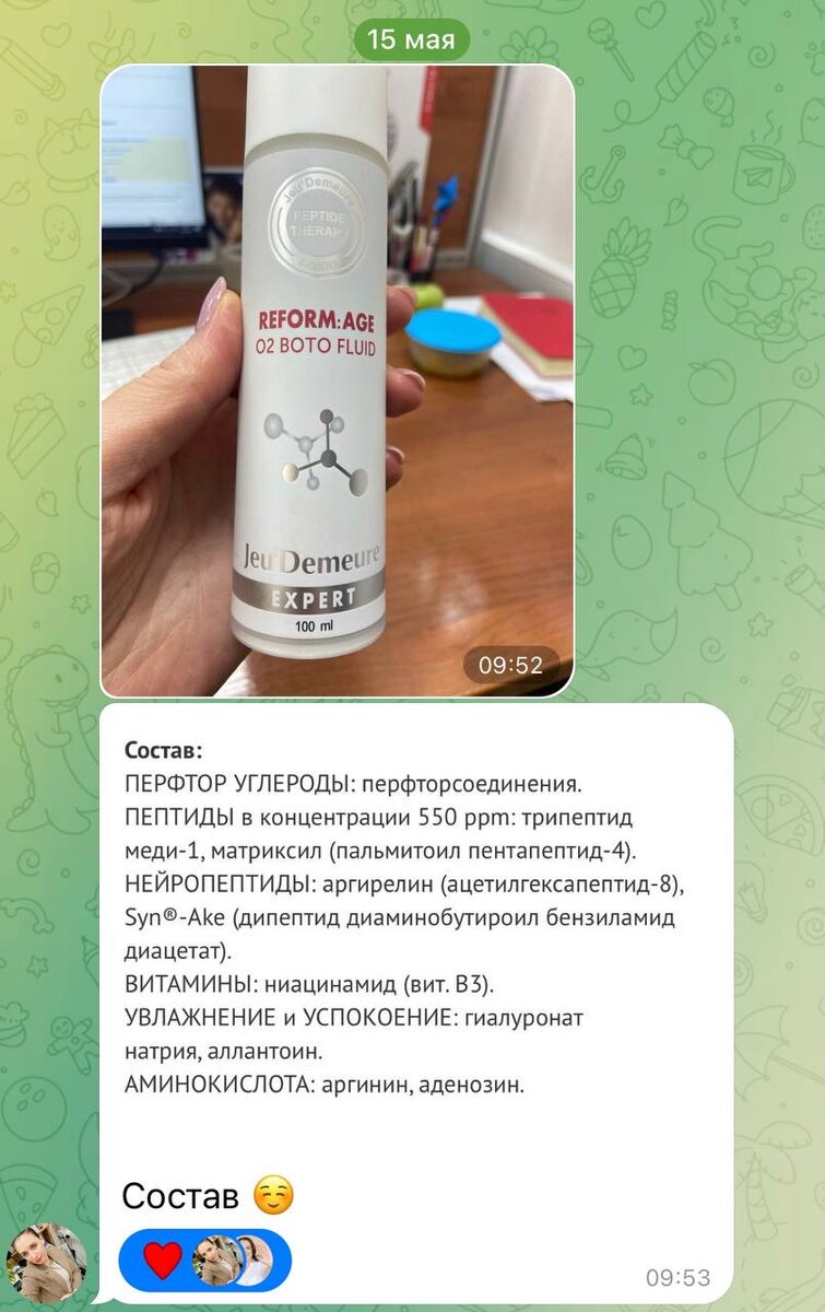 Разбор косметики: правда и мифы 📌 Сегодня среда — значит, снова разбираем ваши любимые косметические средства! 🔍 Получила на тестирование два новых продукта, один из которых особенно привлек мое внимание. Это корейское средство с ботулоподобным эффектом. Производитель обещает потрясающий эффект от применения за счет активных ингредиентов. Действительно, пептиды начинают действовать примерно через месяц регулярного использования, и это обещание звучит заманчиво! Но есть нюанс... 👀 Производитель указал лишь активные компоненты, подчеркивая наличие перфоратор углеродов и пептидов, но скромно умалчивает о полной формуле средства. А ведь кроме полезных пептидов важны также стабилизирующие эмульсию эмульгаторы и необходимые консерванты. Без полного списка компонентов невозможно оценить безопасность и эффективность продукта. Вот почему важно видеть полную картину: обращайте внимание на упаковку, фотографируйте её целиком, включая состав на обратной стороне. Ведь полная информация помо