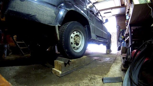 Заезд: Включаю пониженную передачу (это важно для контроля и медленного, плавного движения) и спокойно заезжаю на брусья. Всё! Машина приподнята на солидные 18 см!