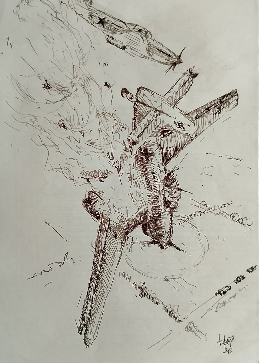 Кто просил "Штуку"? "Последнее пике". Это эскиз конечно, гелиевая ручка. Если дойдёт до живописи, некоторые тонкости могут поменяться.