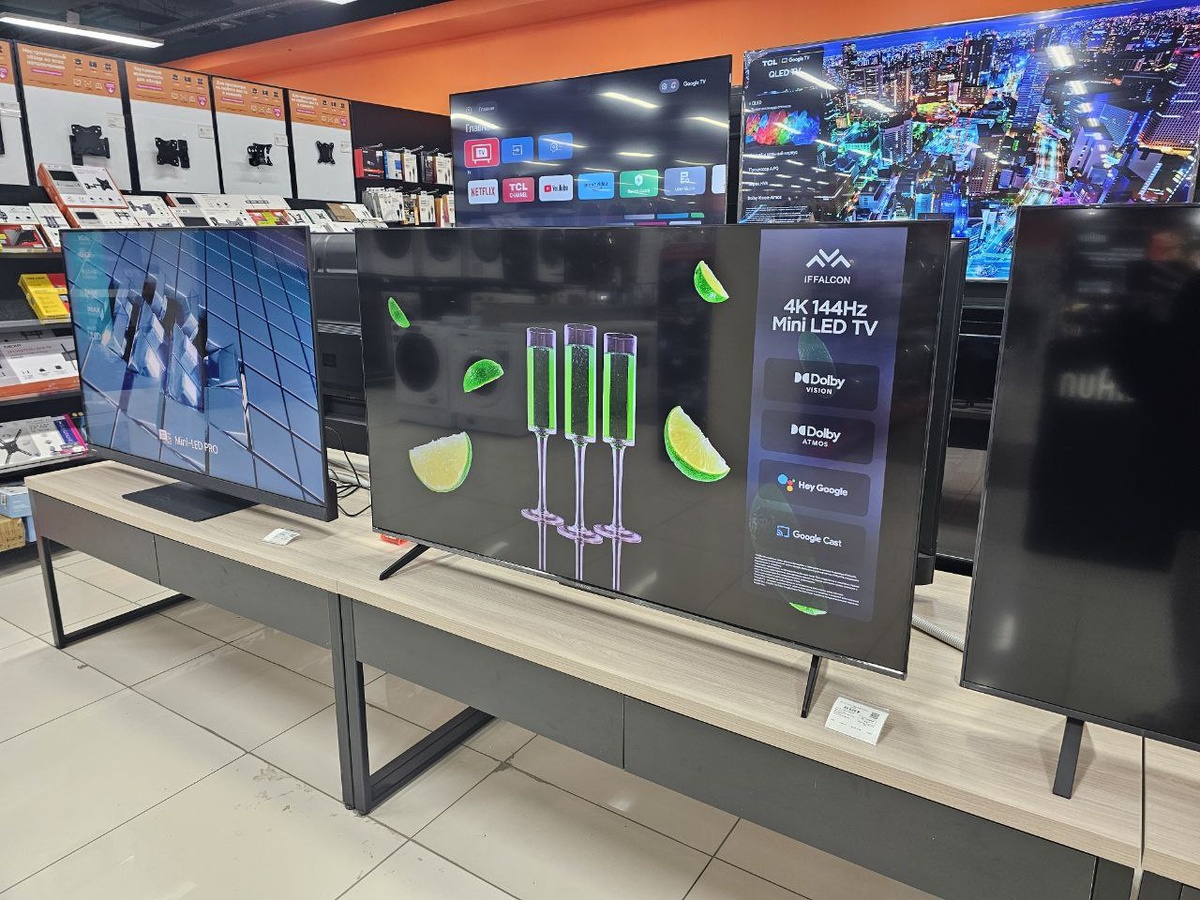Телевизоры iFFalcon иногда выглядят проще, чем у TCL, где дизайн более изысканный, и продаются через ограниченное число магазинов. Например, в России их можно купить только в DNS, что сокращает расходы на логистику, но ограничивает доступность.