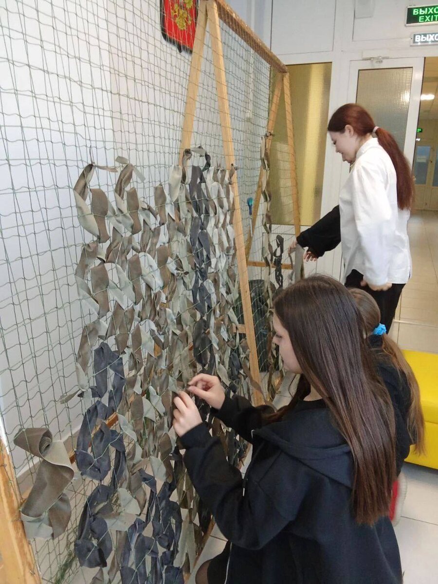 Школьники из Кувандыка (школа №5) третий год плетут маскировочные сети для СВО, изготовив около 10 сетей, и делают блиндажные свечи.