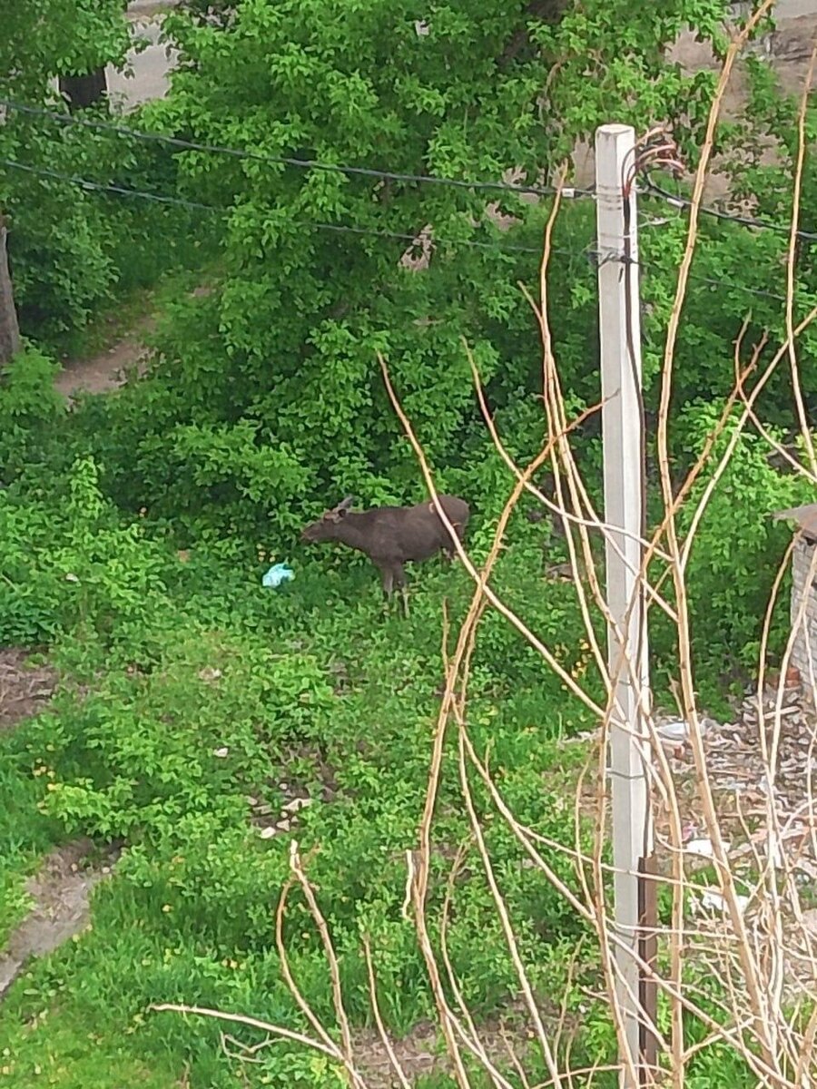 В социальных сетях опубликовали фотографию лося во дворе дома №8 по улице Кутрухина в Дубках.