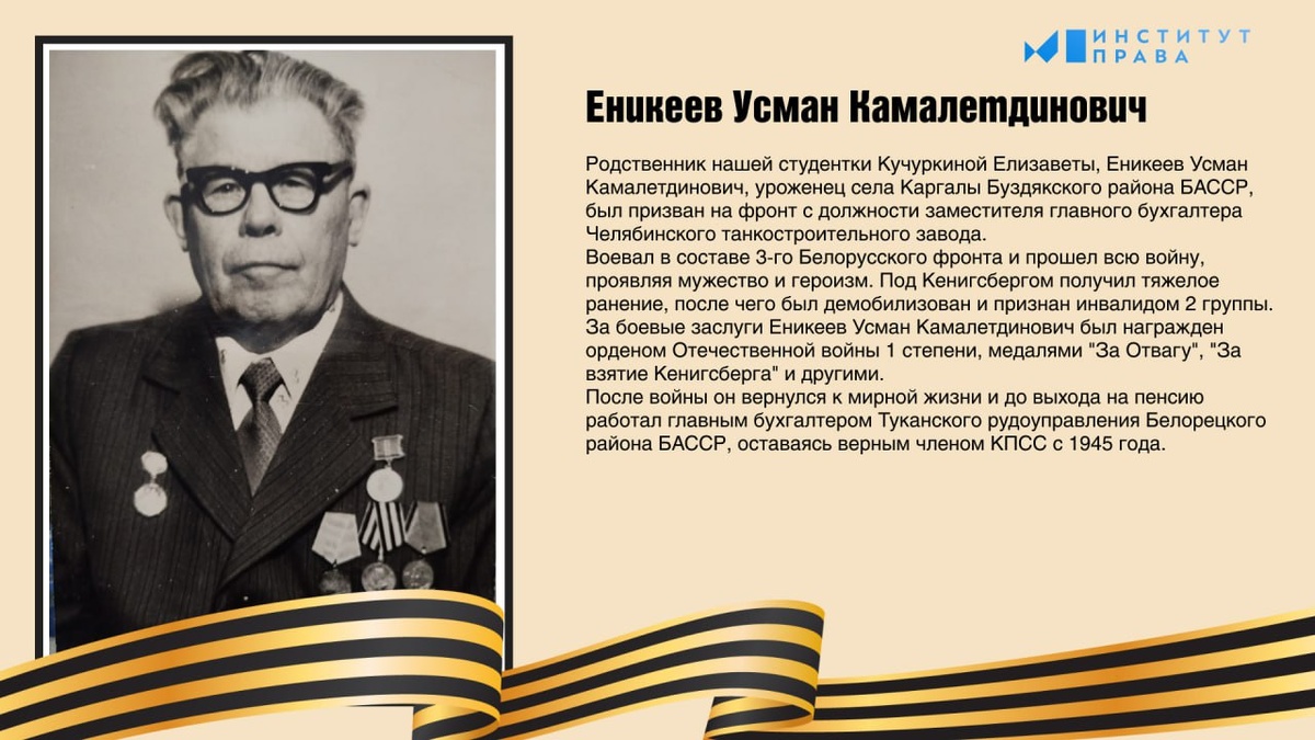 Институт права продолжает серию публикаций о ветеранах Великой Отечественной войны, чьи истории мы бережно храним.🙌🏻
