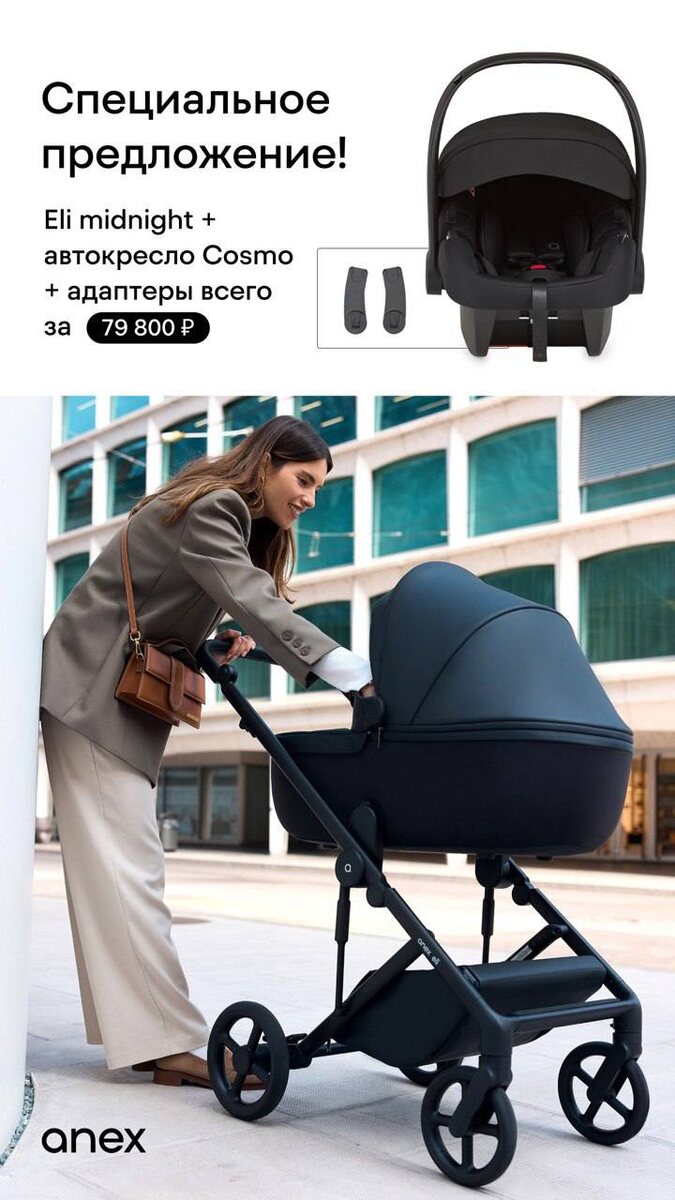 Анонсируем новую акцию от Anex, приуроченную к Международному Дню защиты детей 🌷 Акция на коляски ANEX Eli Midnight 3в1 (с автокреслом) *Акция ограничена наличием акционного товара на складе