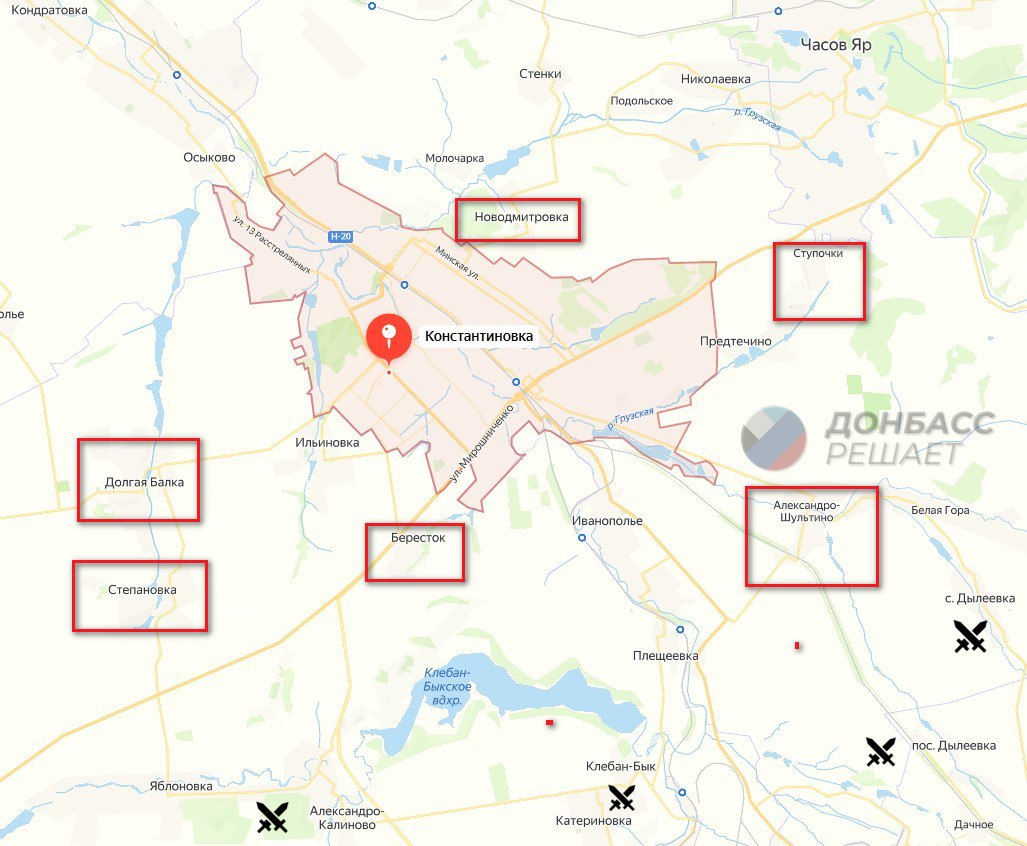 Северское направление: ВС России завершают освобождение Верхнекаменского, и приближаются к западной окраине села. 💥Часов Яр: российская армия взяла под контроль позиции к западу от канала Северский Донец-Донбасс и юго-запад от Григоровки. Работа по прорыву обороны ВСУ на данном участке идет полным ходом! 💥Красноармейское направление: наступление продолжается и охват крупнейшего узла обороны ВСУ в центральном Донбассе. Российские штурмовые группы продвигается северо-восточнее Новой Полтавки, а также западнее и восточнее Новооленевки. 💥Таким образом создается угроза и Константиновки с юго-запада. Уже заняты несколько позиций севернее Александрово-Калиново, что создает угрозу огромного котла на южных подступах к Константиновке. 💥ВС России продолжают оказывать давление на Зеленое Поле и Новополь в ДНР, ВСУ пытаются контратаковать. Несколько попыток врага застопорить продвижение российских войск были сорваны. На карте нашего канала изображены грядущие бои и места дальних подступов оборо