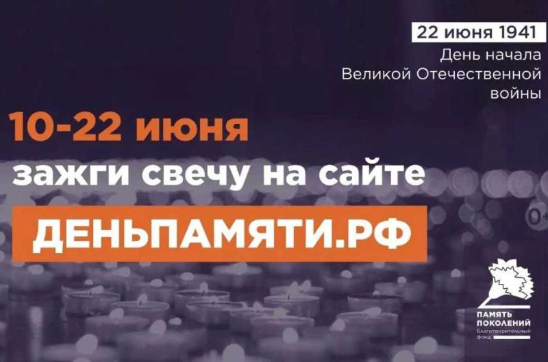 В России с 10 по 22 июня проходит онлайн-мероприятие «Свеча памяти». На веб-сайте деньпамяти.рф любой желающий может виртуально зажечь свечу, чтобы отдать дань уважения героям Великой Отечественной войны. 22 июня, случившееся 84 года назад, стало трагической датой в истории России: Великая Отечественная война привела к гибели 27 миллионов человек, затронув каждую советскую семью. Начиная с 2004 года, в этот день люди выходят на улицы и зажигают свечи в память о тех, кто не вернулся с войны. В последние пять лет появилась возможность зажечь свечу в виртуальном пространстве. Онлайн-акция «Свеча памяти» была создана благотворительной организацией «Память поколений» в качестве альтернативы во время пандемии, когда личное участие было затруднено. Эпидемия закончилась, однако онлайн-формат остался и становится все более востребованным. На платформе деньпамяти.рф можно не только зажечь виртуальную свечу, которая моментально отображается на счетчике, но и просмотреть видеоматериалы с интервью