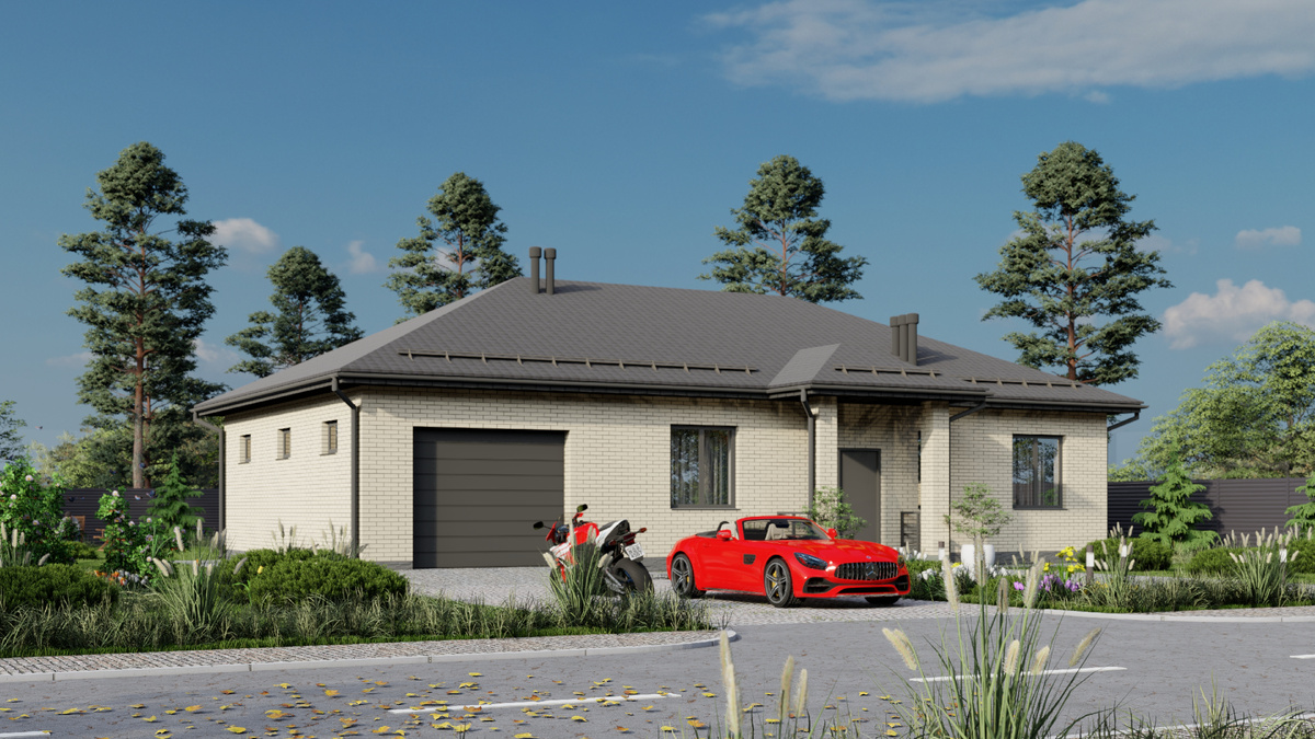 Проект "Солонец" одноэтажного дома со встроенным гаражом